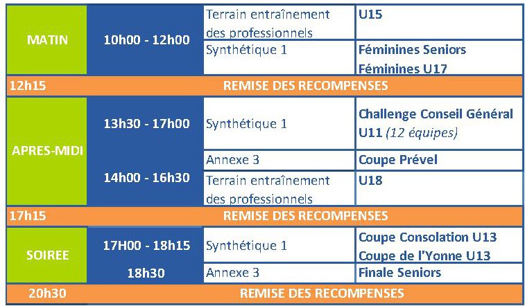 Héry (Coupe de l'Yonne seniors), Neuvy sautour (Coupe Prével), AJ Auxerre 3 (Coupe Pierre Bureau - U18), Auxerre Stade et Avallon CO 2(Coupe de...